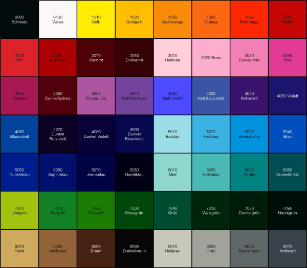 This comparison table should give you a rough idea of how the available colors look like